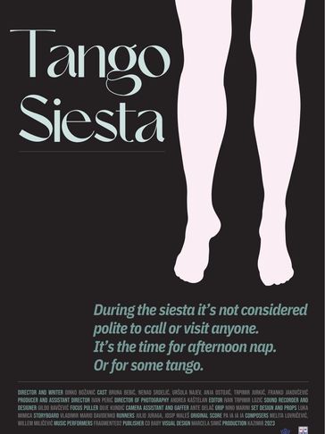 Summer. The Mediterranean. Siesta. While the father and son are sleeping in the bedroom, after lunch, the mother and two daughters are preparing the living room with the sea view. Suddenly, a tennis ball falls onto the terrace. Tango.